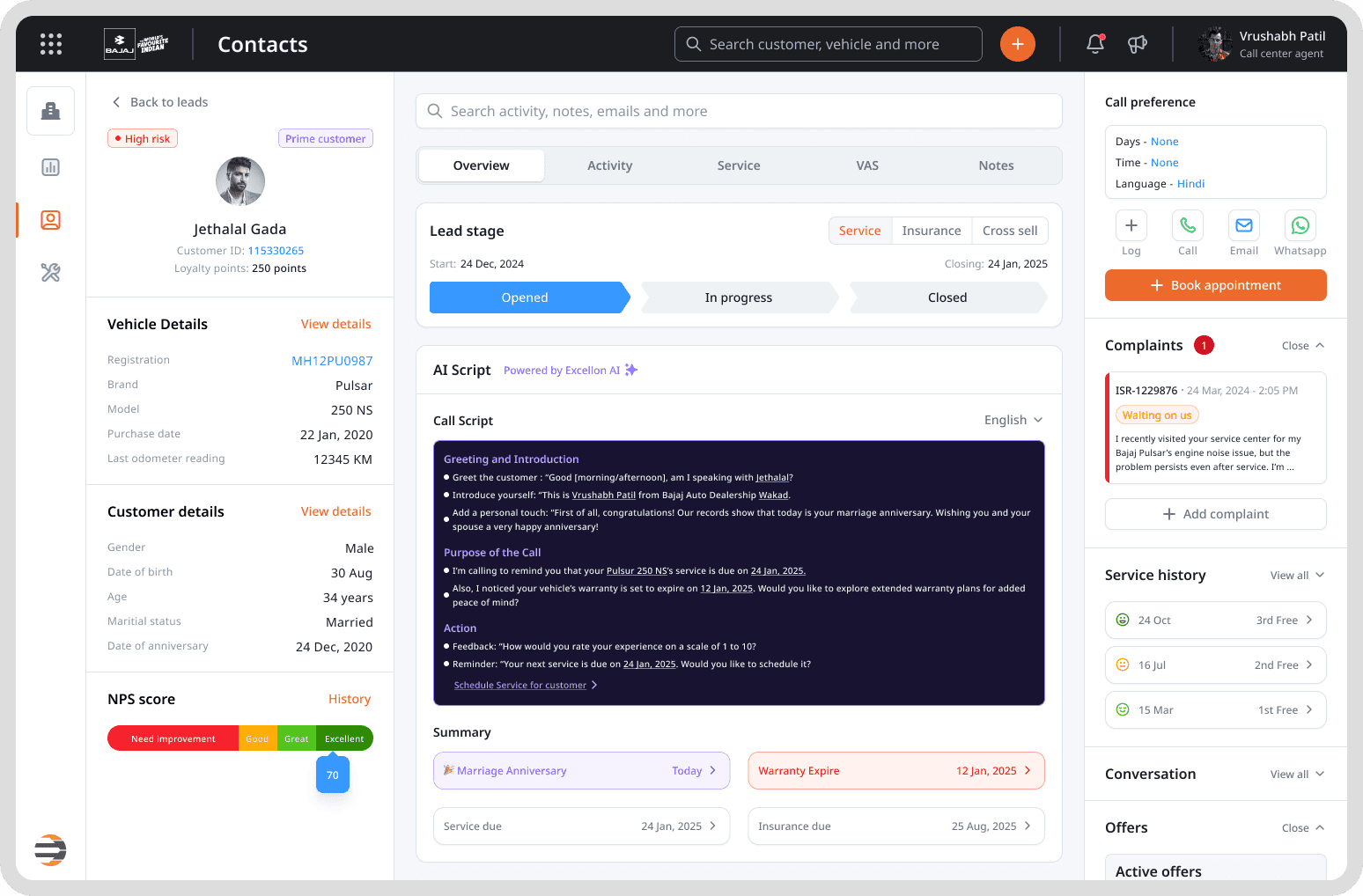 Service history visibility was critical for resolving customer queries quickly.