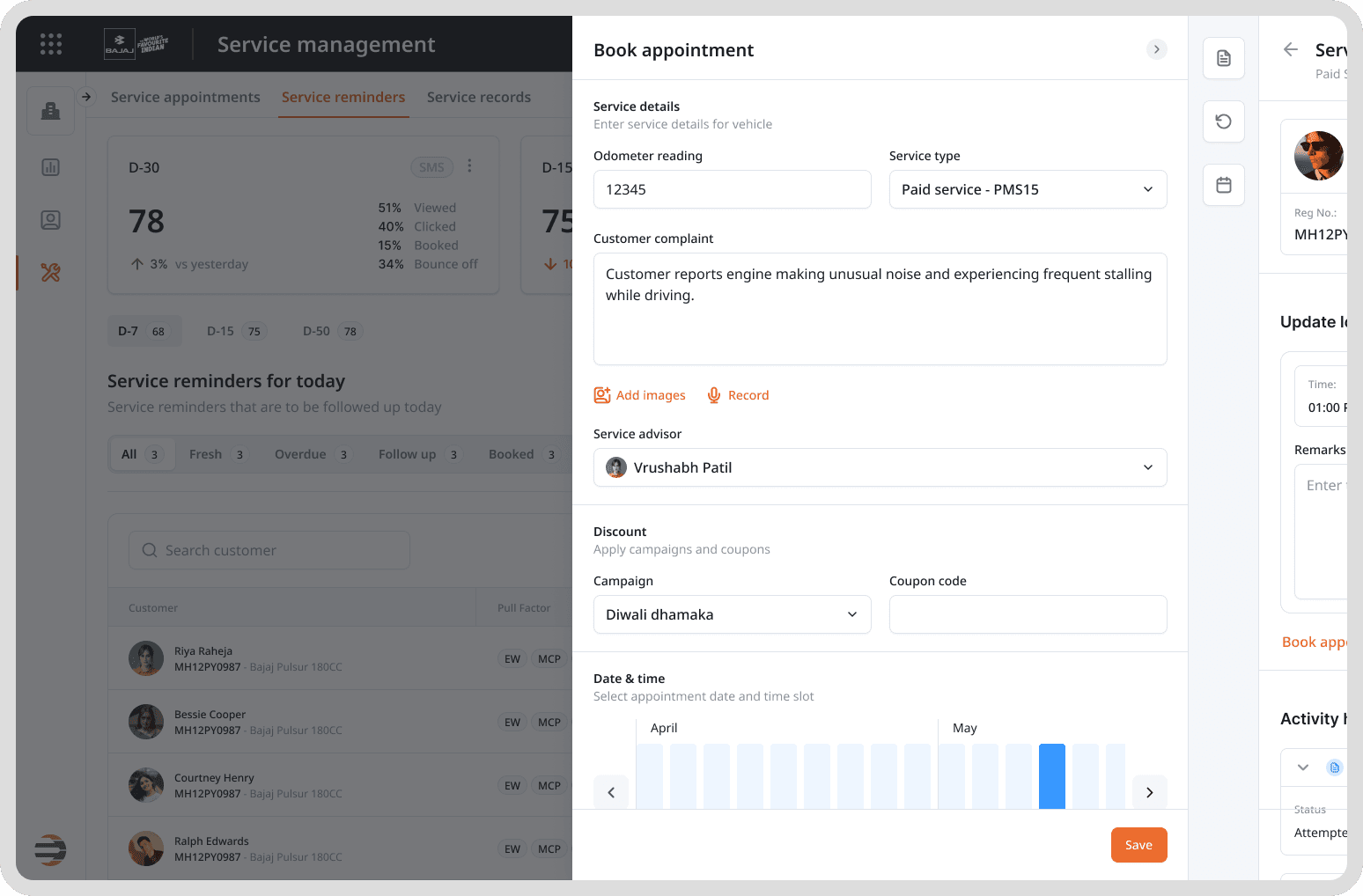 Intuitive interface for scheduling service appointments, enabling quick and hassle-free booking for customers.
